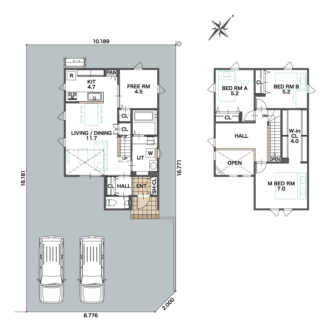 - 北東側公道8.000m 接道16.771m、南東側公道8.000m 接道8.776m