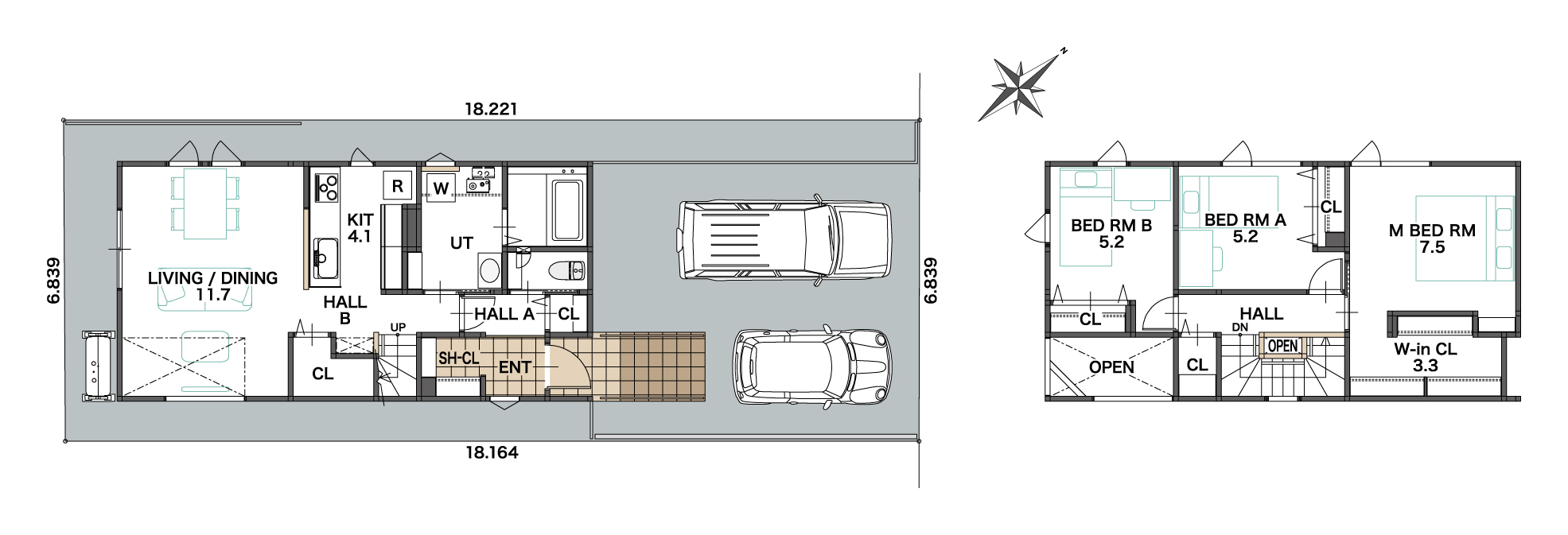 - 北東側公道8.000m 接道6.839m