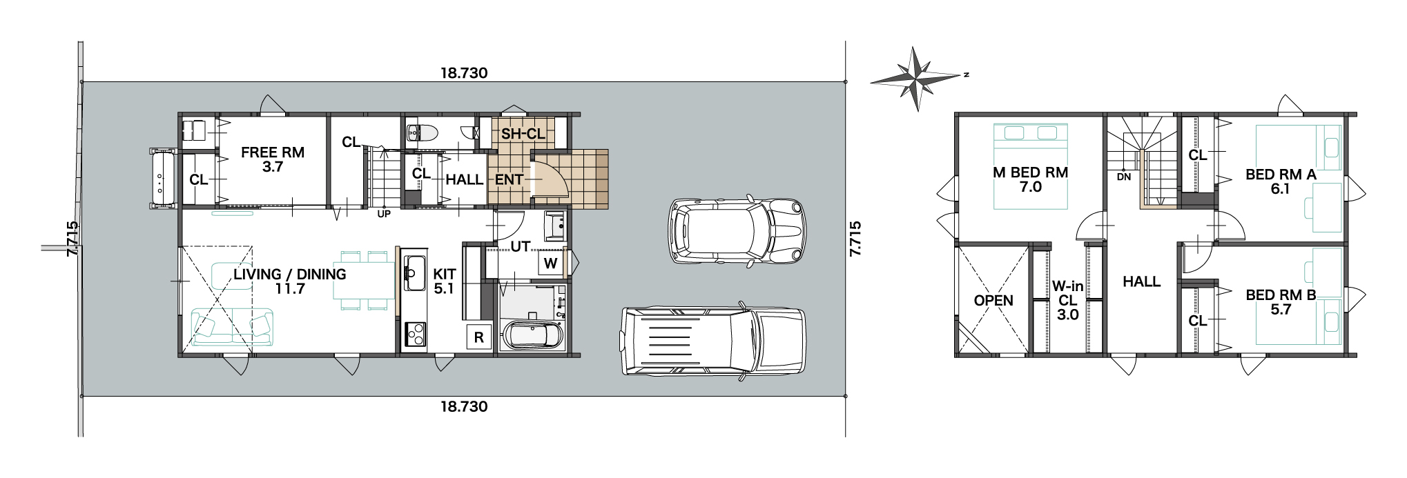 - 北側公道8.000m 接道7.715m