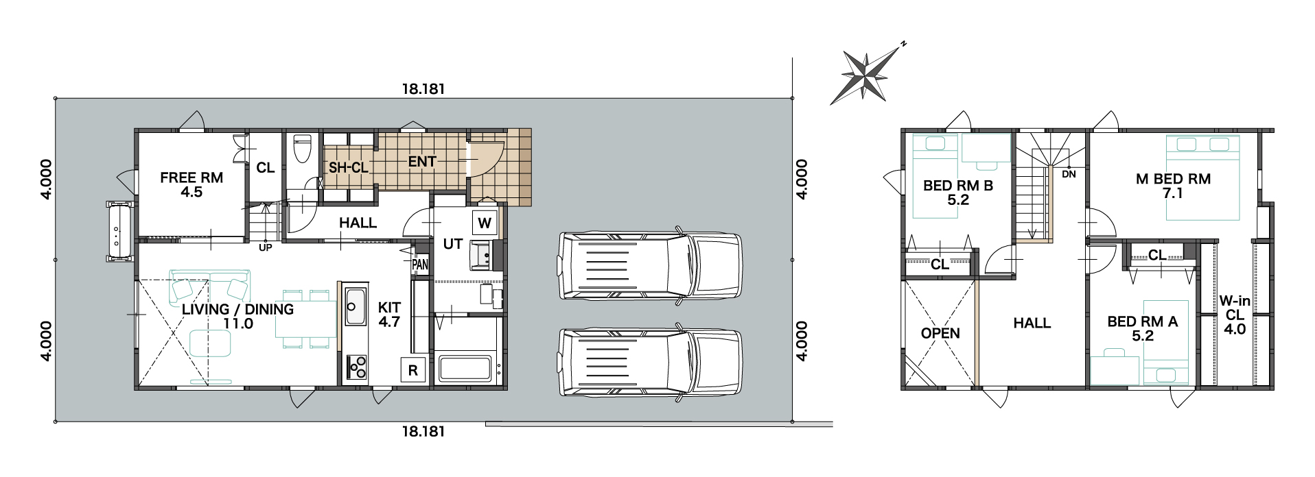- 北東側公道5.960~6.000m 接道8.000m