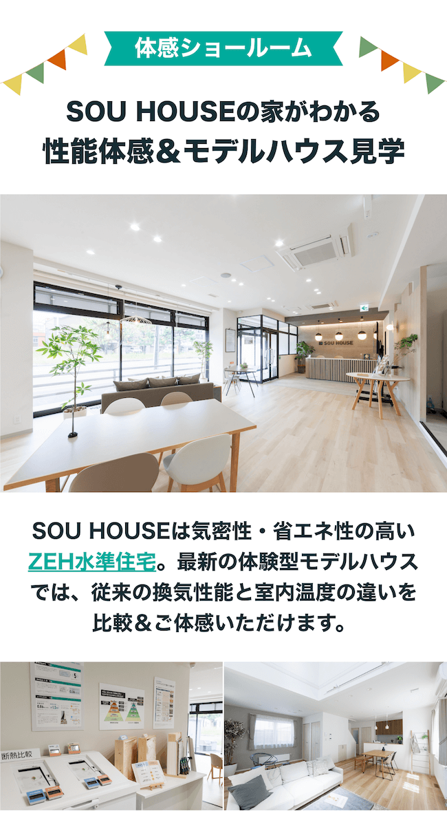 【体感ショールーム】秋の新築建売フェア開催! イベント ショールーム住所:札幌市東区北14条東9丁目1-12 1F ◎地下鉄東豊線「東区役所前」駅徒歩6分 ◎無料駐車場完備 ◎キッズルーム・ベビー休憩室完備 来場予約はこちらから簡単入力 イベント 会場 —以下から選択してください—SOUHOUSE東ショールーム ご希望日(火・水曜定休) ご希望時間 ご希望時間を選択してください10:00~11:00~12:00~13:00~14:00~15:00~16:00~17:00~18:00~(月~金のみ)19:00~(月~金のみ) お名前 姓 名 電話番号(ハイフン(-)なし) メールアドレス 郵便番号 都道府県 都道府県を選択してください北海道青森県岩手県宮城県秋田県山形県福島県茨城県栃木県群馬県埼玉県千葉県東京都神奈川県新潟県富山県石川県福井県山梨県長野県岐阜県静岡県愛知県三重県滋賀県京都府大阪府兵庫県奈良県和歌山県鳥取県島根県岡山県広島県山口県徳島県香川県愛媛県高知県福岡県佐賀県長崎県熊本県大分県宮崎県鹿児島県沖縄県 市区町村 町域以下 SOU HOUSEをどこでお知りになりましたか? 選択してくださいInstagramWEB検索facebookYoutubeCMチラシラジオ紹介住宅展示場DM(ダイレクトメール)メルマガLINE運営ショップ通りがかり看板スーモカウンター等の窓口紹介スーモ不動産サイトその他 ご覧になったことのある広告を教えてください テレビCMラジオCM地下鉄広告屋外看板見たことはない ご意見・ご質問(300文字以内) 前のイベント 一覧に戻る TOPイベント情報【体感ショールーム】秋の新築建売フェア開催! 資料請求 まずはSOU HOUSEを知りたい方へ ご自宅でご覧いただける、SOUHOUSEの家づくりがわかる無料パンフレットをお送りいたします。 資料請求はこちら 来場・相談予約 実際の建物見学をしたい方へ 住まいを体感したい方へ。ご見学と一緒にお客様の条件に合わせた住まいのご提案も行います。 来場・相談予約はこちら