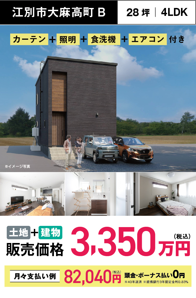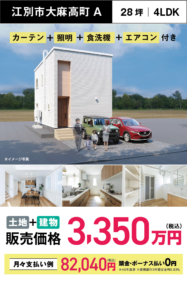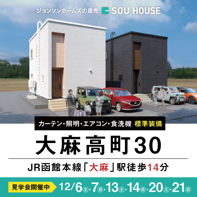 江別市大麻高町2棟公開 見学会 現地住所:江別市大麻高町30(住居表示) ●JR函館本線「大麻」駅 徒歩14分 ●大麻東小学校・大麻東中学校エリア 間取り・物件概要をみる 間取り・物件概要をみる 来場予約はこちらから簡単入力 イベント 会場 —以下から選択してください—江別市大麻高町A江別市大麻高町B ご希望日(火・水曜定休) ご希望時間 ご希望時間を選択してください10:00~11:00~12:00~13:00~14:00~15:00~16:00~17:00~18:00~(月~金のみ)19:00~(月~金のみ) お名前 姓 名 電話番号(ハイフン(-)なし) メールアドレス 郵便番号 都道府県 都道府県を選択してください北海道青森県岩手県宮城県秋田県山形県福島県茨城県栃木県群馬県埼玉県千葉県東京都神奈川県新潟県富山県石川県福井県山梨県長野県岐阜県静岡県愛知県三重県滋賀県京都府大阪府兵庫県奈良県和歌山県鳥取県島根県岡山県広島県山口県徳島県香川県愛媛県高知県福岡県佐賀県長崎県熊本県大分県宮崎県鹿児島県沖縄県 市区町村 町域以下 SOU HOUSEをどこでお知りになりましたか? 選択してくださいInstagramWEB検索facebookYoutubeCMチラシラジオ紹介住宅展示場DM(ダイレクトメール)メルマガLINE運営ショップ通りがかり看板スーモカウンター等の窓口紹介スーモ不動産サイトその他 ご覧になったことのある広告を教えてください テレビCMラジオCM地下鉄広告屋外看板見たことはない ご意見・ご質問(300文字以内) 前のイベント 一覧に戻る 次のイベント TOPイベント情報南区真駒内にて新築建売住宅2棟公開 資料請求 まずはSOU HOUSEを知りたい方へ ご自宅でご覧いただける、SOUHOUSEの家づくりがわかる無料パンフレットをお送りいたします。 資料請求はこちら 来場・相談予約 実際の建物見学をしたい方へ 住まいを体感したい方へ。ご見学と一緒にお客様の条件に合わせた住まいのご提案も行います。 来場・相談予約はこちら