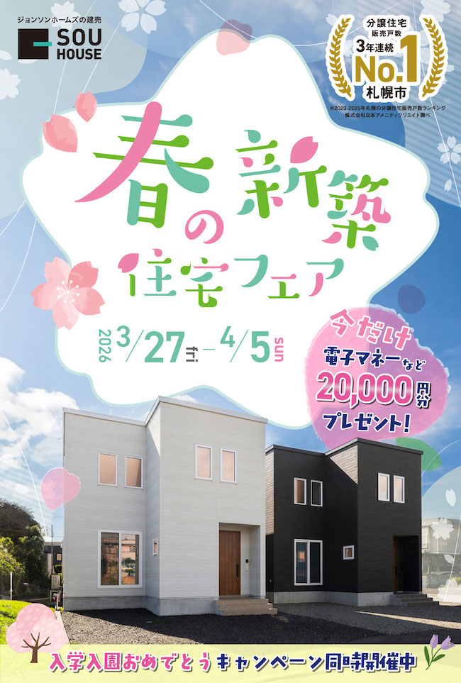 【体感ショールーム】春の新築住宅フェア開催♪ イベント ショールーム住所:札幌市東区北14条東9丁目1-12 1F ◎地下鉄東豊線「東区役所前」駅徒歩6分 ◎無料駐車場完備 ◎キッズルーム・ベビー休憩室完備 来場予約はこちらから簡単入力 イベント 会場 —以下から選択してください—SOUHOUSE東ショールーム ご希望日(火・水曜定休) ご希望時間 ご希望時間を選択してください10:00~11:00~12:00~13:00~14:00~15:00~16:00~17:00~18:00~(月~金のみ)19:00~(月~金のみ) お名前 姓 名 電話番号(ハイフン(-)なし) メールアドレス 郵便番号 都道府県 都道府県を選択してください北海道青森県岩手県宮城県秋田県山形県福島県茨城県栃木県群馬県埼玉県千葉県東京都神奈川県新潟県富山県石川県福井県山梨県長野県岐阜県静岡県愛知県三重県滋賀県京都府大阪府兵庫県奈良県和歌山県鳥取県島根県岡山県広島県山口県徳島県香川県愛媛県高知県福岡県佐賀県長崎県熊本県大分県宮崎県鹿児島県沖縄県 市区町村 町域以下 SOU HOUSEをどこでお知りになりましたか? 選択してくださいInstagramWEB検索facebookYoutubeTikTokCMチラシラジオ紹介住宅展示場DM(ダイレクトメール)メルマガLINE運営ショップ通りがかり看板スーモカウンター等の窓口紹介スーモ不動産サイトその他 ご覧になったことのある広告を教えてください テレビCMラジオCM地下鉄広告屋外看板見たことはない ご意見・ご質問(300文字以内) 前のイベント 一覧に戻る TOPイベント情報【体感ショールーム】春の新築住宅フェア開催♪ 資料請求 まずはSOU HOUSEを知りたい方へ ご自宅でご覧いただける、SOUHOUSEの家づくりがわかる無料パンフレットをお送りいたします。 資料請求はこちら 来場・相談予約 実際の建物見学をしたい方へ 住まいを体感したい方へ。ご見学と一緒にお客様の条件に合わせた住まいのご提案も行います。 来場・相談予約はこちら